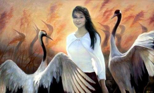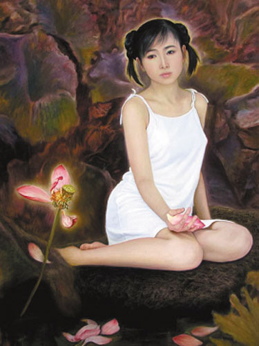 李壮平说,他的作品以屈原笔下的“山鬼”和郭沫若的“巫山神女”为题材。“我发现身边朝夕相处的女儿与女神形象很贴近。在征得她的同意后,我便同女儿一道开始了创作。她既是画中的模特儿,又是同我一起创作的画家。”